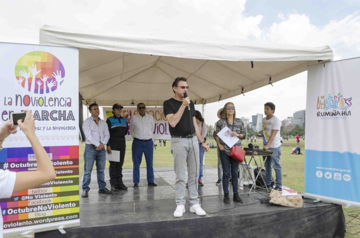 Más de 300 personas, entre los cuales estaban el Alcalde de Rumiñahui y el Presidente del Club Deportivo Independiente del Valle, miembros de la Secretaria General de Gobernabilidad y Seguridad del Municipio de Quito, entre otras organizaciones y colectivos sociales, participaron de este acto simbólico en el que se comprometieron expresando su compromiso con la paz y la noviolencia en este año 2016.