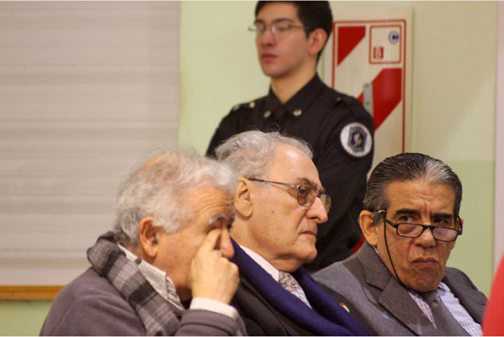 “Apenas ingresa a la sala Di Pasquale se sienta. Una de las abogadas defensoras se da vuelta, él le sonríe, intercambia unas palabras con ella. Saca los lentes y una lapicera, pero no anota nada. Escucha hasta al final la audiencia. Cuando termina se va custodiado.” Gisella Moreira, abogada presente en la sala de audiencias en el momento de la lectura de las sentencias.