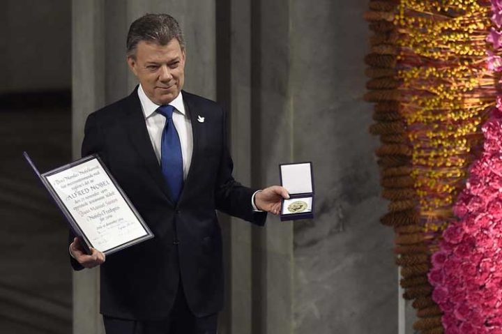 Santos dedicó también el lauro a los más de ocho millones de víctimas directas dejadas por la contienda.