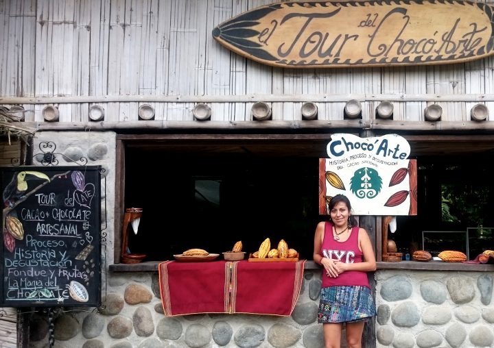 Si quieres escuchar muchas más historias del cacao y chocolate, no te olvides de visitar a Jaqueline Ramírez en su local “El tour del ChocóArte” en Mindo. Además de probar un chocolate fino, puedes aprender la historia del chocolate y entender el trabajo de una artesana.