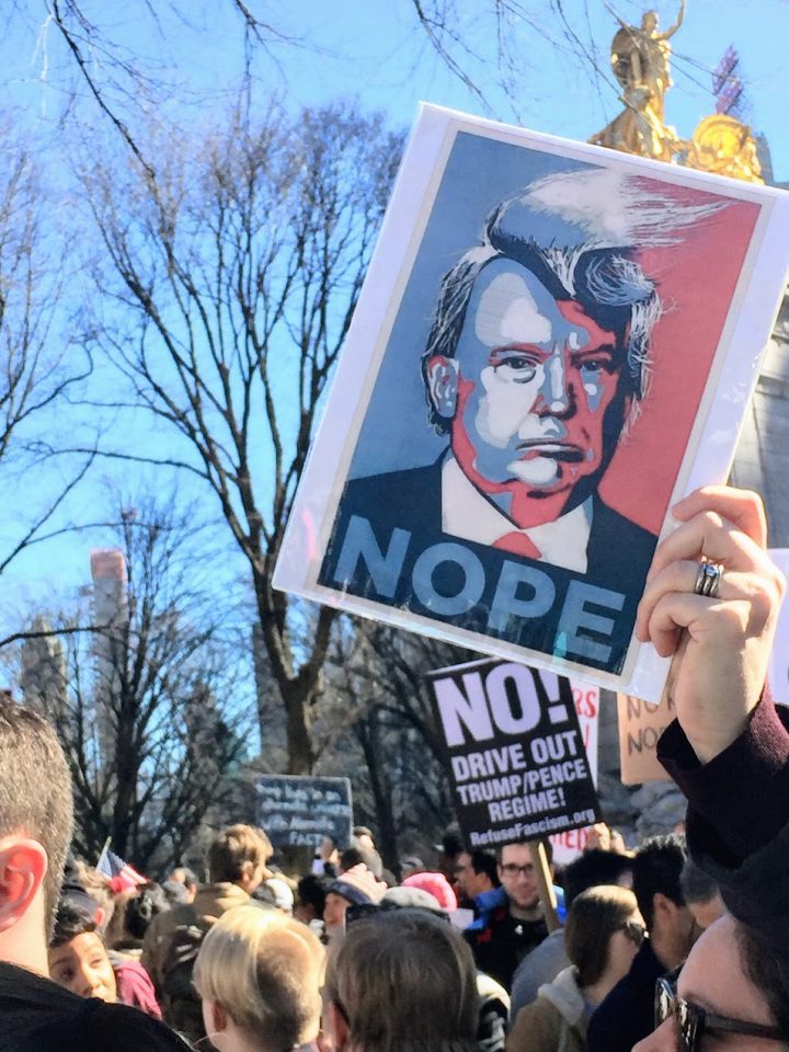 En este día del presidente, se hizo una protesta en Nueva York llamada Protesta No Es Mi Presidente. Miles de manifestantes se reunieron en el Central Park Oeste y en el Círculo de Colón, cerca de la Torre Internacional Trump.
