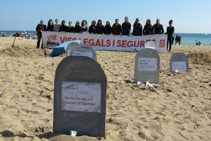 A Barcelona, l’entitat “Stop Mare Mortum”, ha organitzat l’enterrament de la Declaració dels Drets Humans a la platja de la Barceloneta, com a símbol de la constant vulneració de drets humans amb els migrants i la falta de vies legals i segures d’accés al territori espanyol per a ells.