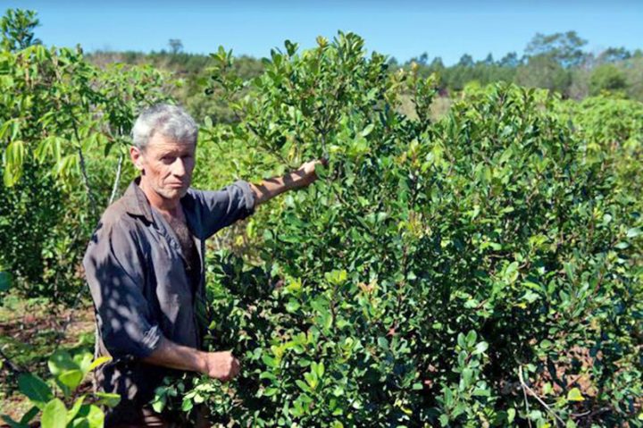 Está frente a una planta de yerba. La mira. La analiza. Casi una radiografía sin siquiera tocarla. Hasta que se abalanza sobre ella y muestra una rama. Avisa que es un gajo maduro que está creciendo mal. Lo corta. Explica que es un trabajo metódico para que la planta crezca fuerte y produzca más. Es uno de los secretos del productor agroecológico.