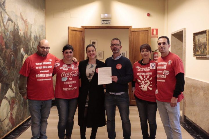 Iñaki Bernal, senador navarro de IU, y Vanessa Angustia, senadora de En Marea, han registrado hoy una petición dirigida a la Mesa del Senado y que parte de los trabajadores y trabajadoras de Coca Cola en Fuenlabrada que, desde hace más de tres años, mantienen un conflicto laboral con la multinacional. La compañía, a pesar de los grandes beneficios económicos que cada año registra en nuestro país, no ha cumplido debidamente ni con el auto ni con el fallo de ejecución que la obligaba a readmitir a los trabajadores que fueron despedidos, y que ahora prestan servicio en un “almacén virtual” que no es ni remotamente el centro pionero de logística e innovación al que se comprometió Coca Cola. Los trabajadores y trabajadoras afectadas denuncian que “se permite a las multinacionales moldear las resoluciones judiciales a su antojo”.