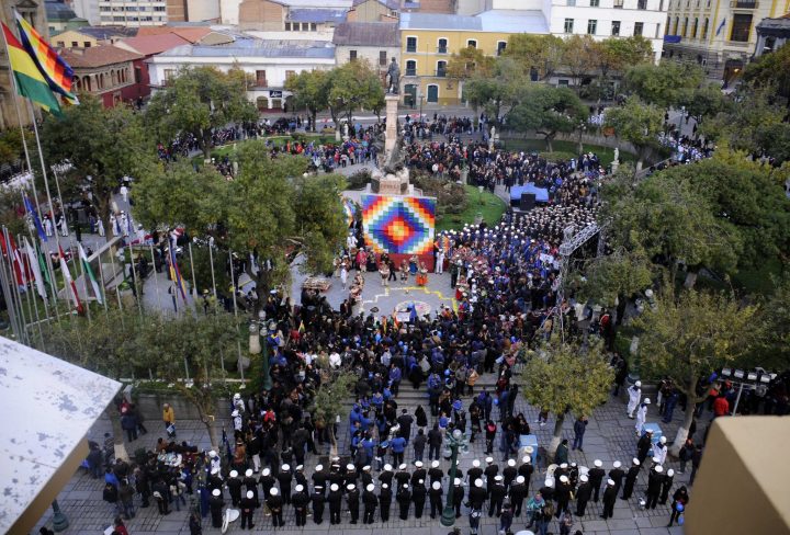 El presidente Evo Morales encabezó el martes el ritual andino que se realizó en la plaza Murillo, a la espera de la entrega de la demanda marítima boliviana a la Corte Internacional de Justicia (CIJ) en La Haya, que pidió que Bolivia retorne al mar con soberanía.
