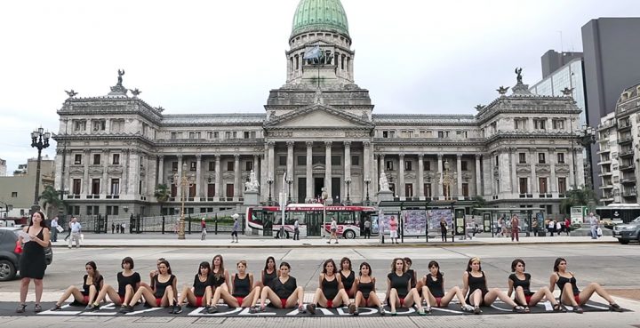 El 8 de marzo en Buenos Aires, en el marco del Paro Internacional de mujeres, un grupo de actrices, bailarinas, abogadas y periodistas, protagonizó frente al Congreso de la Nación una acción pública reclamando –¡una vez más!– el derecho de las mujeres a disponer libremente de su cuerpo a través de una Ley de aborto.