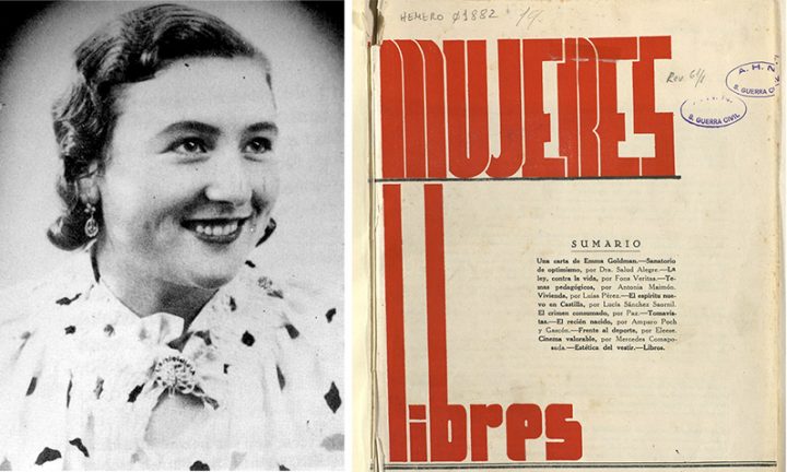 Izq.: Sara Berenger. Der.: Primer número de Mujeres Libres, con un artículo de Emma Goldman.