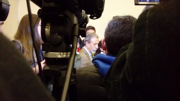 Daniel Andrade, Presidente de la FECH, inauguró el acto, para luego tomar la palabra Edgardo Condeza del Movimiento por la Participación Ciudadana.