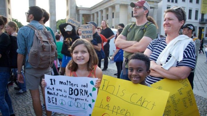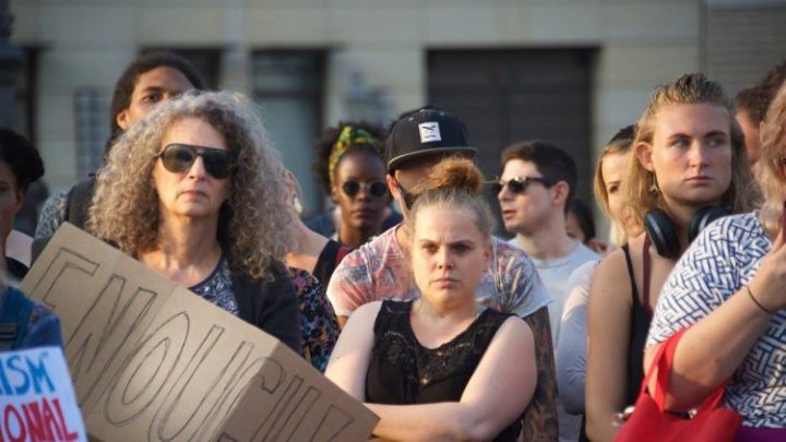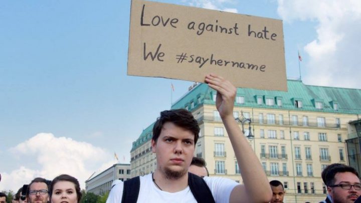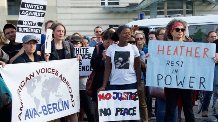 Cientos de berlineses se reunieron ayer en la manifestación solidaria “Berlín Stands with Charlottesville” en la puerta de Brandenburgo, frente a la embajada de Estados Unidos. El evento espontáneo fue organizado por grupos locales de izquierda. Los participantes expresaron su solidaridad con la víctima asesinada Heather Heyer, las otras víctimas del ataque automovilístico y todos aquellos que se rebelan contra el racismo y el extremismo derechista.