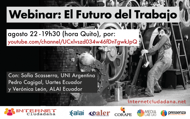 El martes 22 de agosto a las 19h30 – hora Quito – se transmitirá el webinar El futuro del trabajo a través del canal youtube Internet Ciudadana: