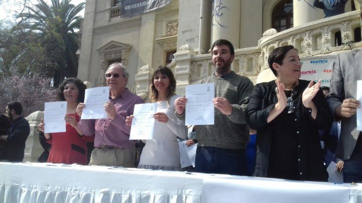 La firma del acuerdo tuvo lugar, con la presencia de la candidata presidencial Beatriz Sánchez, en las afueras del Museo de Arte Contemporáneo, en el Parque Forestal de Santiago.