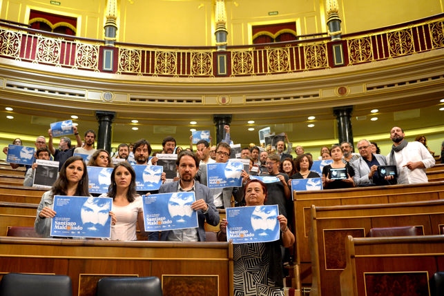 PP, PSOE y Ciudadanos no han sumado sus firmas a una declaración institucional sobre el activista argentino desaparecido Santiago Maldonado. En consecuencia, la declaración, impulsada por Unidos Podemos-En Comú-En Marea, no ha sido aprobada por el Congreso.