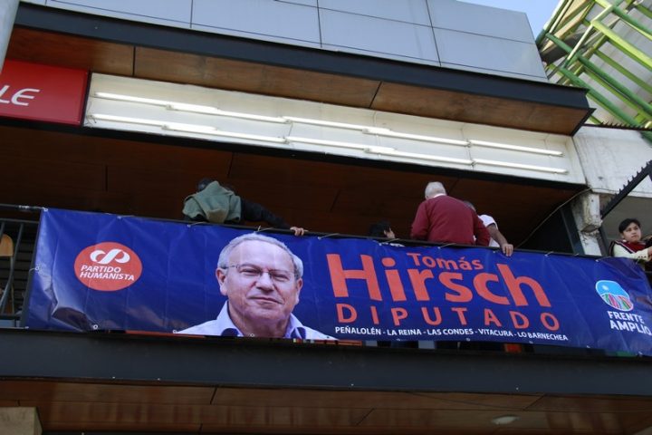 Estuvimos en la inauguración de la sede de la campaña a diputado del candidato emblemático del Partido Humanista, Tomás Hirsch, ubicada en la Rotonda Grecia, en el sector oriente de Santiago.