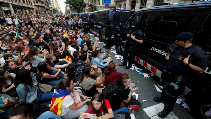 Pero no queda ahí la cosa sino que, la difusión internacional de la imagen del país, algo que preocupa mucho al gobierno y sus alrededores (entidades financieras y empresariales, por ejemplo) queda reflejada en miles de mensajes, portadas de medios, fotos, vídeos, donde paradójicamente, se resaltaba la actitud totalmente opuesta de las gentes que, brazos en alto, llamando a la calma, acompañándose y arropándose mutuamente seguían adelante con el referéndum. Hubo casos, muy pocos, de amagos de violencia por parte de algunas personas, que no empañan la actitud general ni el clima de reivindicación y sentido de estar haciendo algo justo y con derecho que, al menos yo, quise percibir.