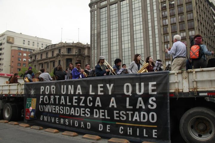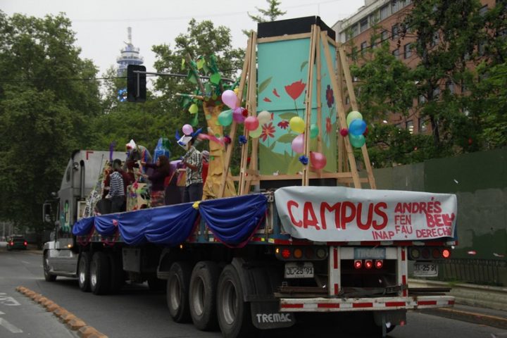 Estuvimos en la Alameda acompañando los carros alegóricos y el desfile que la Federación de Estudiantes de la Universidad de Chile (FECH) desplegó, recuperando una actividad que era tradicional en nuestro país y solía transformar las calles principales de la capital en una fiesta juvenil llena de color y alegría, conocida como el Desfile de la Primavera. Esta festividad era también una instancia de crítica al conservadurismo de la oligarquía, lo que transformaba al espacio en una sátira que permitía a los estudiantes dar cuenta de las problemáticas sociales y políticas de la época.