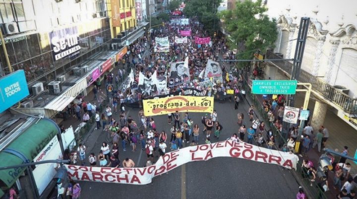 El texto que leyeron los integrantes del Colectivo de Jóvenes por Nuestros Derechos que organiza la marcha, expresa: “En lo que va del año ya se han registrado once casos comúnmente denominados de gatillo fácil en toda la provincia de Córdoba. A su vez, se registró un caso de femicidio ejecutado por los policías Luciano Andrés Gimenez y Jonathan Carlos Nievas, quienes con su arma reglamentaria asesinaron a Micaela Johana García. Las mayorías de las muertes al día de hoy siguen impunes. La marcha de la gorra cada vez mas grande y participativa ha logrado visibilizar los delitos que comete el Estado policial.”
