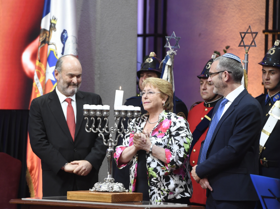 En el Patio de Las Camelias del Palacio de La Moneda, la Presidencia de la República, Michelle Bachelet, junto a algunos ministros y personalidades de reconocida trayectoria en el ambiente del judaísmo chileno, como el recientemente electo diputado Tomás Hirsch, se realizó la ceremonia de “Janucá, Fiesta de las Luces”.