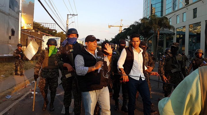 La Policía Militar del Orden Público de Honduras reprimió brutalmente este viernes a un grupo de periodistas que daban cobertura a una movilización convocada por la oposición política que alega fraude en las pasadas elecciones del 26 de noviembre.