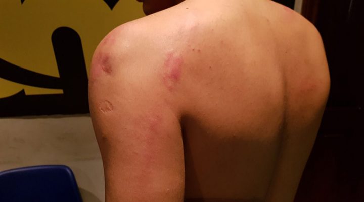 En tanto, Rony Martínez fue azotado en su espalda y sus piernas fueron heridas y César Silva fue agredido a punta pies por los militares y golpeado con toletes.
