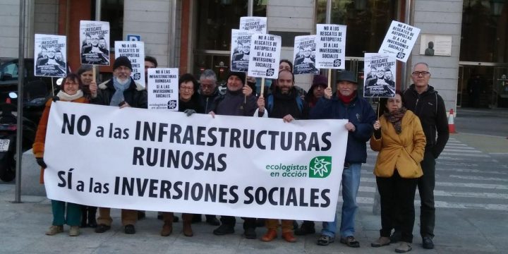 Coincidiendo con el rescate de la autopista de peaje R4 que se ha llevado a cabo este 21 de febrero (el primero de los nueve previstos en las próximas semanas), Ecologistas en Acción denuncia que estas operaciones supondrán un desembolso de miles de millones de euros de fondos públicos.