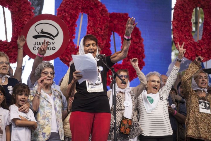 El documento que leyeron los organizadores fue extenso, porque a la pedagogía histórica que busca defender la memoria frente a las políticas públicas del macrismo de negacionismo histórico. No solo la historia es larga, también era larga la enumeración de injusticias del presente que debían ser denunciadas, el otorgamiento de prisiones domiciliarias a los criminales de lesa humanidad, la criminalización de la protesta, los asesinatos de parte de las fuerzas de seguridad, la discontinuación de programas de derechos humanos en los distintos ministerios, la censura, la caza de periodistas y sindicalistas opositores, los presos políticos, cuya figura más emblemática es Milagro Sala, a punto de cumplir 800 días de cautiverio, etc…