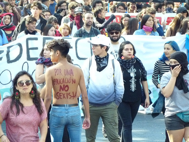 Varios miles de estudiantes, junto a docentes y apoderados, se dieron cita en las principales avenidas de las diferentes ciudades de Chile hoy jueves, para manifestarse por la Educación pública, gratuita y de calidad. El foto-repotaje que publicamos es de José Gabriel Feres y da cuenta de la manifestación en Santiago.