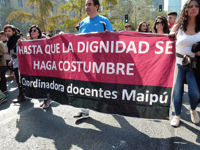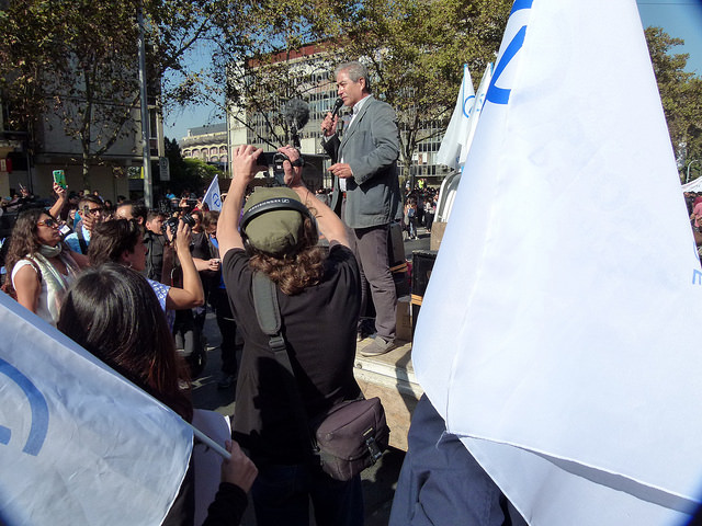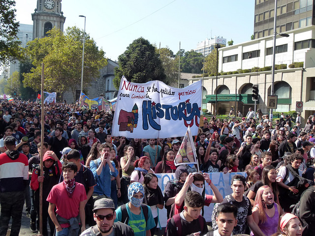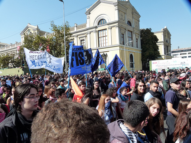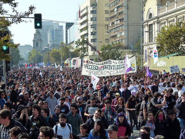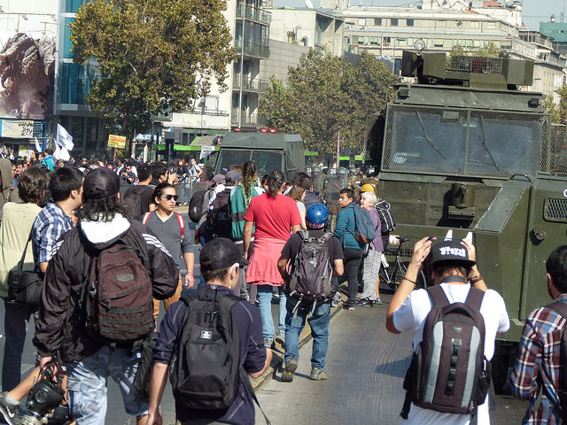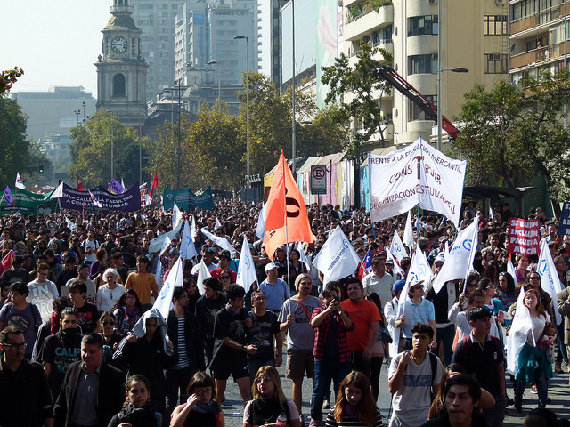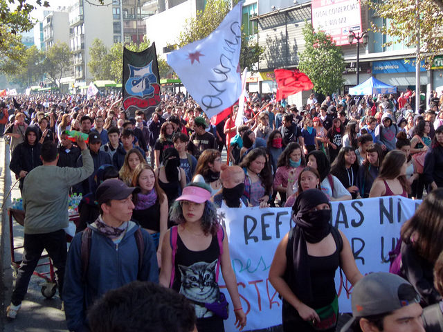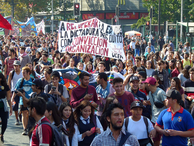 Varios miles de estudiantes, junto a docentes y apoderados, se dieron cita en las principales avenidas de las diferentes ciudades de Chile hoy jueves, para manifestarse por la Educación pública, gratuita y de calidad. El foto-repotaje que publicamos es de José Gabriel Feres y da cuenta de la manifestación en Santiago.