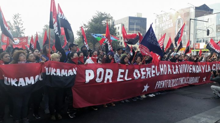 En el Metro, una pareja con banderas del Partido Comunista se baja en la Estación La Moneda, van a marcha de la CUT, yo continúo hasta la Estación Los Heroes, hacia la otra manifestación, la Marcha Clasista que ya arrancó. Muchos jóvenes y organizaciones sociales, pancartas, cantos y bailes. Un par de cuadras antes del escenario, diligentes encapuchados cortan la columna en dos, la marcha de desvía hacia el norte y yo camino por el antiguo barrio Yungay hasta encontrar una estación de Metro y alcanzar la marcha de la CUT que ha llegado a su destino. Las rejas impiden acercarse al escenario, todo tranquilo, ni bombas lacrimógenas ni guanacos, las banderas descansan en el suelo y la gente compra refrescos para sus hijos.