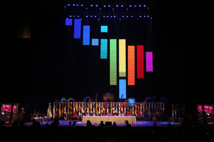 Su saludo inicial en distintas lenguas originarias fue incontestable señal del tenor de fuerte interculturalidad que se quiere imprimir a la Conferencia.
