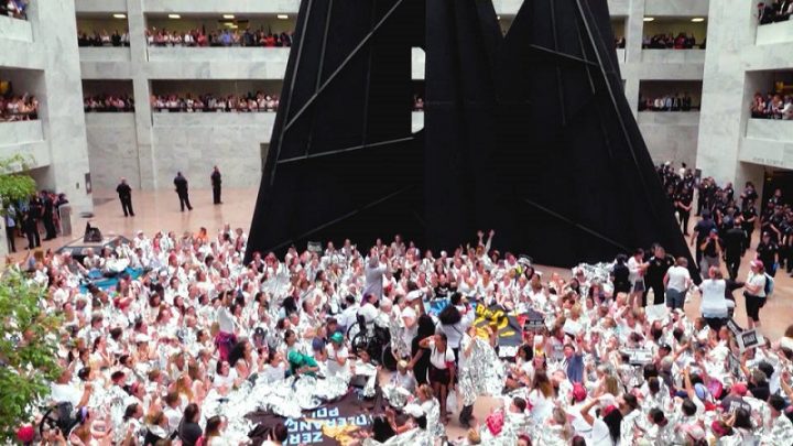 En Washington DC, casi 600 mujeres fueron arrestadas el jueves durante una acción masiva de desobediencia civil no violenta en el Capitolio, en protesta por las políticas en materia de inmigración implementadas por el gobierno del presidente de Estados Unidos, Donald Trump. Se observaron manifestantes que gritaban “nos importa” y “abolir el ICE [sigla en inglés del Servicio de Inmigración y Control de Aduanas]” y que portaban mantas de emergencia de poliéster similares a las que se entregan a los inmigrantes que se encuentran encarcelados en los centros de detención a lo largo de Estados Unidos. Las manifestantes inundaron el edificio Hart del Senado para hacer una sentada con el fin de exigir que los menores inmigrantes sean liberados de la custodia estadounidense y sean reunidos con sus familias. Entre las manifestantes se encontraba Linda Sarsour, coorganizadora de la Marcha de las Mujeres en Washington, realizada el 21 de enero de 2017 en la capital estadounidense para defender los derechos de las mujeres.
