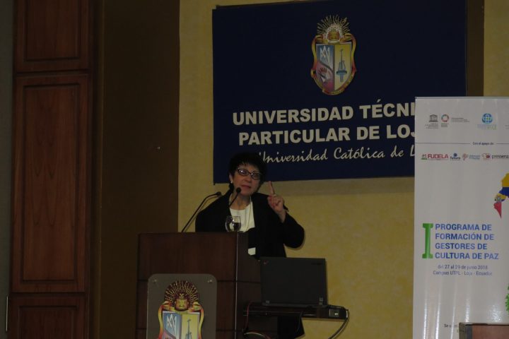 Dentro de las actividades y conferencias desarrolladas en el I Programa de Formación de Gestores de Cultura de Paz que se llevó a cabo en el campus de la Universidad Técnica Particular de Loja, de la ciudad de Loja en Ecuador, asistimos a la intervención de Saadia Sánchez, Directora y Representante en Ecuador de la Oficina de UNESCO para Ecuador, Bolivia y la República Bolivariana de Venezuela.
