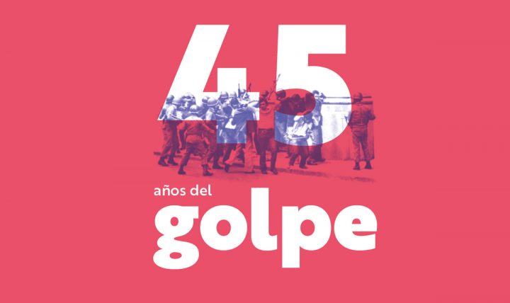 Estampado serigráfico gratuito de la imagen conmemorativa de los 45 años del golpe de Estado. Cada persona deberá traer lo que prefiera estampar (telas –poleras, bolsos- o papel)