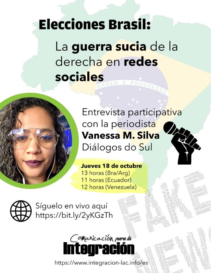 Para comprender mejor el panorama y saber cómo actuar frente a ésto, el Foro de Comunicación para la Integración de NuestrAmérica organizó una entrevista participativa virtual con la periodista brasileña Vanessa Martina Silva, de Diálogos do Sul.