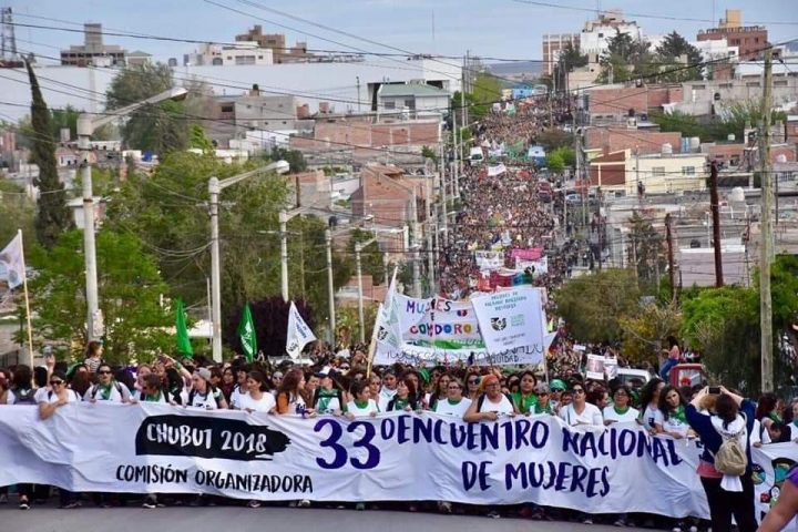 Entre los días 13, 14 y 15 de Octubre, se realizo el XXXIII Encuentro Nacional de Mujeres, en la Ciudad de Trelew, provincia de Chubut. Estos encuentros se vienen realizando desde 1985, luego de que en la clausura de la Década de la Mujer, en Kenia, África, las participantes decidieran comenzar a reunirse y organizarse en torno a la problemática específica de las mujeres. Allí se plantea una forma diferente de hacer política, apostando a la horizontalidad, la pluralidad, la autogestión, la autonomía, el federalismo y al consenso democrático.