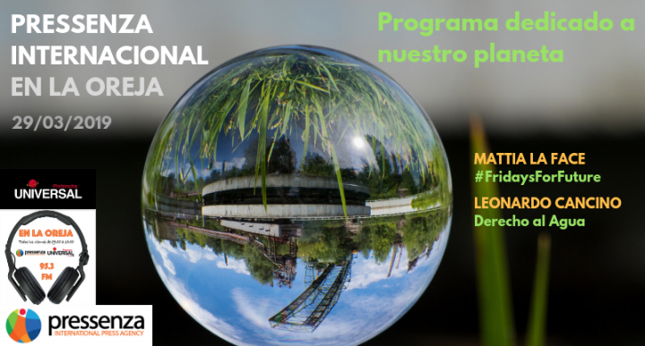 Luego del habitual recorrido planetario de noticias, nos conectamos con Mattia La Face, joven activista de Fridays For Future Italia, en directo desde una movilización en las calles de Turín. Leonardo Cancino, doctor en ciencias sociales y miembro del grupo de apoyo programático Medio Ambiente del Frente Amplio de Chile, en la segunda entrevista nos presenta un panorama de la situación actual en tema de derecho al agua en el planeta, con ocasión del Día Mundial del Agua (22 de marzo).