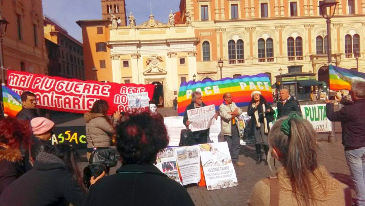 En una conferencia de prensa al aire libre realizada ayer en Roma en la Piazza San Silvestro, se presentó una denuncia ante los fiscales de las ciudades de Roma y Cagliari contra los ministros italianos responsables de aprobar la venta de armas italianas a Arabia Saudita, violando la Ley (integrada) 185/90 sobre el comercio de armas. De hecho, esta ley prohíbe la exportación de material de guerra «a países en estado de conflicto armado» y / o «responsables de graves violaciones a las convenciones internacionales sobre derechos humanos», este es el caso del gobierno saudí.
