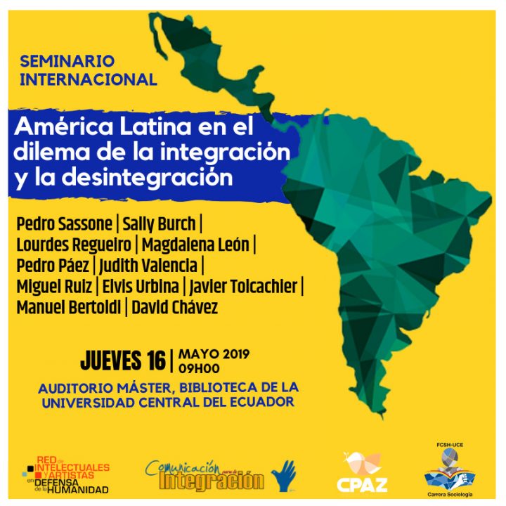 En las instalaciones de la Biblioteca de la Universidad Central del Ecuador, tendrá lugar este jueves 16 de Mayo el seminario internacional AMÉRICA LATINA EN EL DILEMA HISTÓRICO DE LA INTEGRACIÓN Y LA DESINTEGRACIÓN