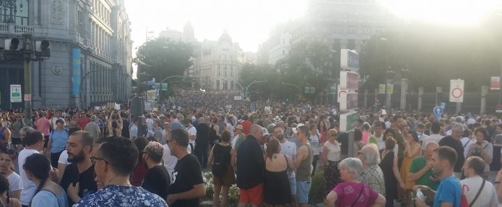 Este sábado 29 de junio, pese a los 40 grados de calor, 60.000 personas -según los organizadores- recorrieron el centro de Madrid hasta el Ayuntamiento para exigir que no se elimine Madrid Central.
