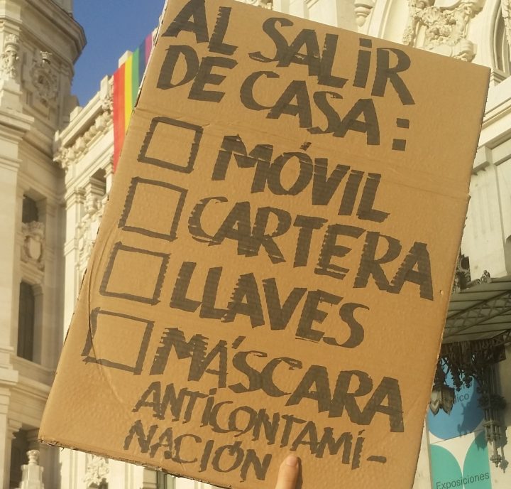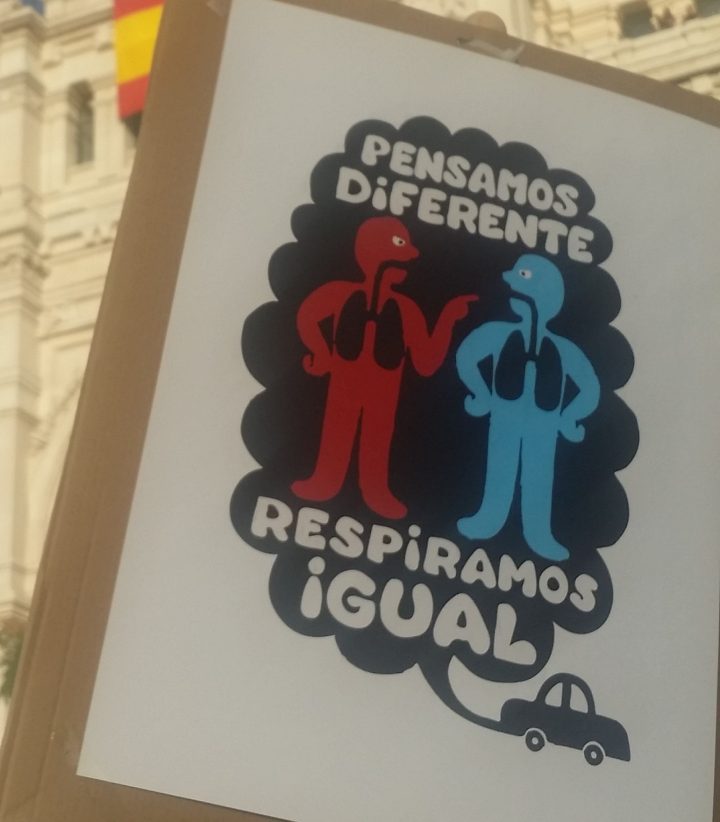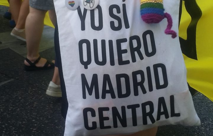 Yetta Aguado, de Madres por el Clima y una de las personas que portaban la pancarta de cabeza, ha defendido Madrid Central «por tratarse de una medida imprescindible para mejorar la salud de nuestros pequeños… como ya lo han demostrado los recientes informes de Ecologistas en Acción y Greenpeace».