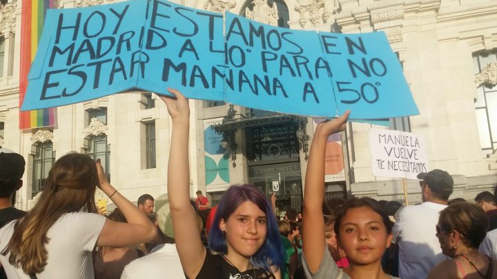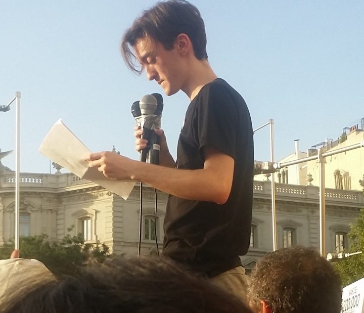 La manifestación convocada por colectivos ambientalistas, organizaciones vecinales, asociaciaciones de padres y madres, etc. terminó ante la puerta del Ayuntamiento de Madrid en la plaza de Cibeles, donde dos estudiantes de bachillerato, Martín Moro y Silvia Ibarra, leyeron un manifiesto.