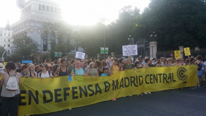 Decenas de miles de personas, bajo un calor abrasador, han recorrido el centro de Madrid para exigir que se mantenga el plan de Madrid Central, puesto en marcha por el anterior gobierno municipal de Manuela Carmena, con el objetivo de rebajar la contaminación en la ciudad.