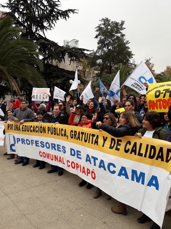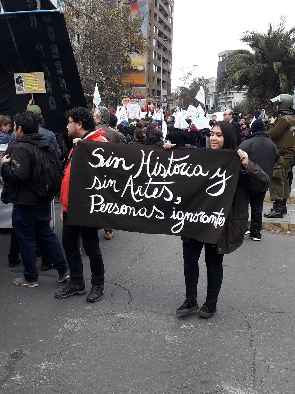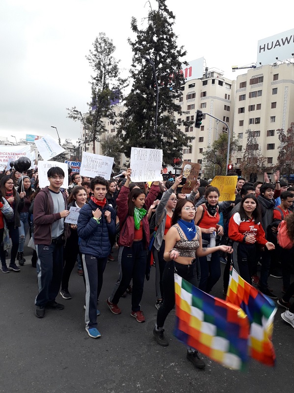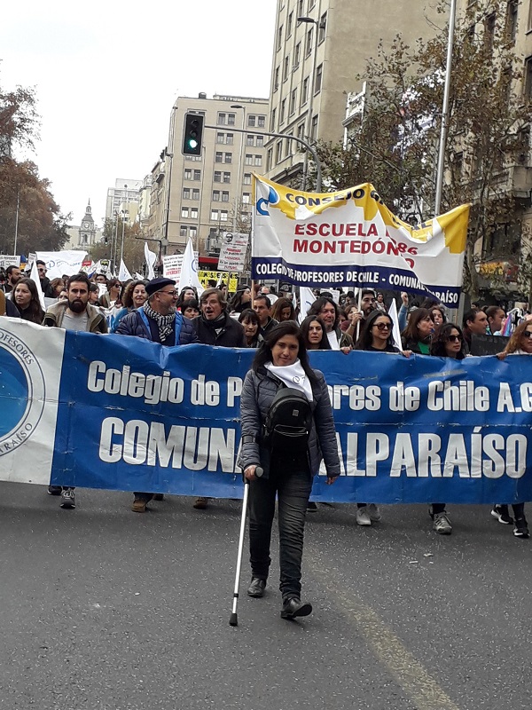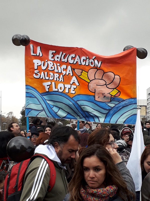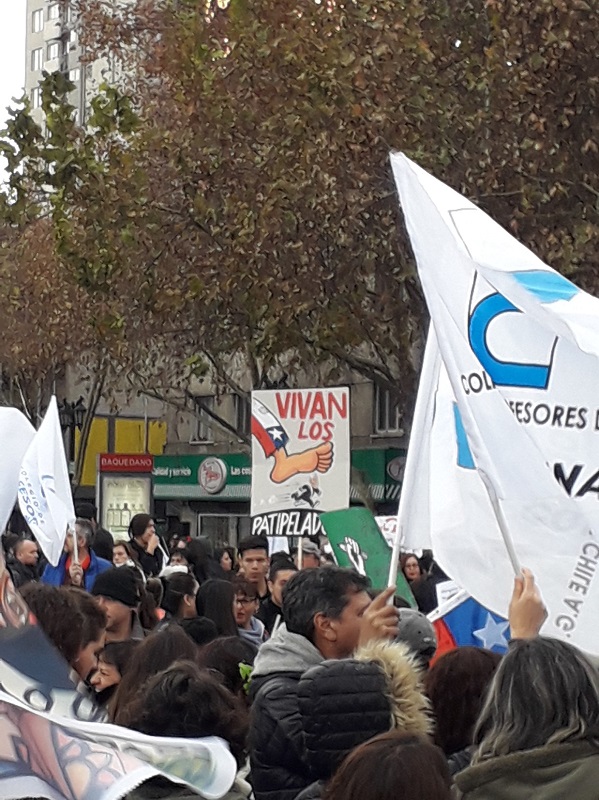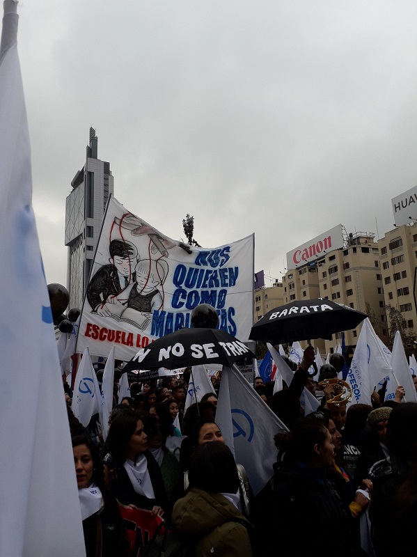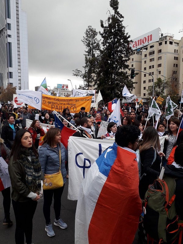 La Marcha marca el cuarto día de Paro Docente Indefinido, declarado el 3 de junio ante la reiterada falta de respuestas del gobierno derechista de Sebastián Piñera y la Ministra de Educación Marcela Cubillos a las justas demandas de los profesores (para ver el detalle del petitorio: http://profesormetropolitano.cl/carta-abierta-a-las-y-los-apoderados-de-chile-por-que-para-los-profesores/). La movilización ha tenido un seguimiento del 80% y hay 5000 establecimientos educacionales paralizados, a pesar de la invisibilidad informativa de los medios de comunicación de masas, tanto escritos como televisados.