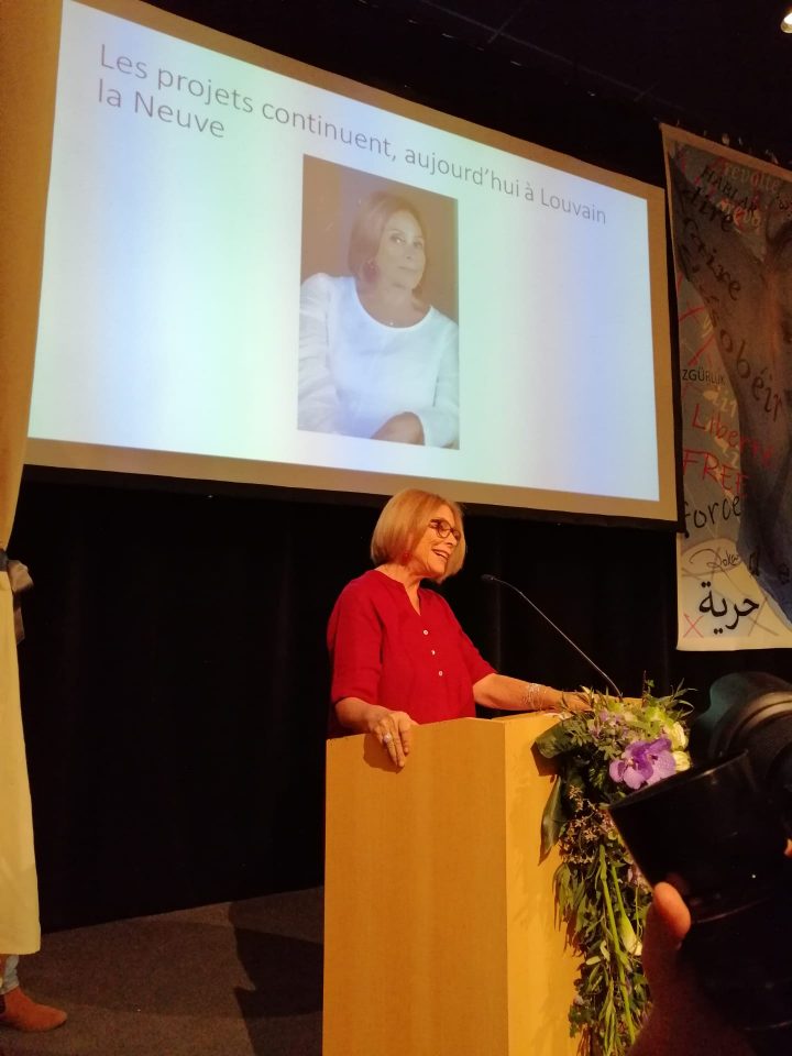 Junto con la premiación, se realizó un coloquio internacional con la destacada periodista nacional, en el Aula Magna de Louvaine-Le Neuve, sobre el tema, “Mujeres y Libertad de Expresión: Arte, Periodismo y Literatura”, asociación que cumplirá 40 años de existencia en 2019 promoviendo la coherencia de mujeres de distintos países del mundo, en la defensa y promoción de los Derechos Humanos.