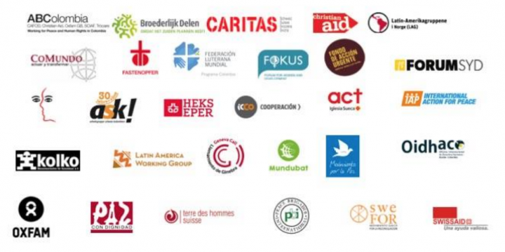 ABColombia, Christian Aid, Comité Noruego de , COMUNDO, Fastenopfer, Federación Luterana Mundial, Foro de Mujeres y Desarrollo-FOKUS, Fondo de Acción Urgente para América Latina, Forum Syd, Fundación Sueca por los Derechos Humanos, Grupo de Trabajo Suiza Colombia -ASK!-, Heks-Eper, ICCO, Iglesia Sueca, International Action for Peace (observadora) kolko – Menschenrechte für Kolumbien, Latin American Working Group, Llamamiento de Ginebra, Mundubat, Movimiento por la Paz -MPDL-en Colombia, OIDHACO, Oxfam, Paz con Dignidad, Peace Brigades International –PBI- (observadora), SweFOR (observadora), Swissaid, Terre des Hommes Suisse.