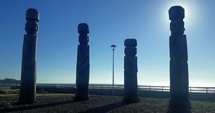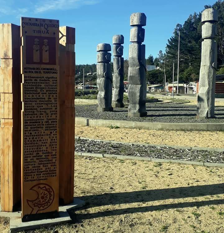 En la costanera de Quidico en territorio Mapuche o Wall Mapu, una localidad costera del Pacífico Sur en Chile, a unos 690 kilómetros al sur de Santiago, se encuentran cuatro Chemamüll (del mapudungun che=persona, mamüll=madera, Gente de Madera).