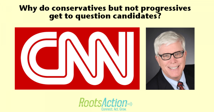 Antes de este debate, FAIR y RootsAction.org propusieron que CNN añada a un periodista progresista para que sea el interrogante de los debates demócratas. Para los debates republicanos, CNN incluye a interrogadores de derecha que normalmente no están en CNN. Para los debates demócratas no se incluyen interrogadores de izquierda que por tradición se han prohibido en las programaciones estadounidenses. ¿Es este un enfoque dictado por las ineludibles fuerzas del infoentretenimiento del capitalismo?