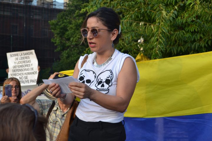 El educador comunitario Andrés Cevallos del Grupo de estudios Colombianos en la Universidad Pública de New York (CUNY) explica “Este es muy duro, no sólo para Colombia sino para todo el continente, llevamos, ya más de 480 asesinados”. Otras cifras hablan de más de 700 a 900 amenazados. Ceballos recalca que es una violencia estructurada dirigida a callar a los líderes y lideresas en Colombia, hace 6 días en el día de nuestra independencia 20 de julio, callaron 3 voces más. Yamile Guerra Departamento de Santander, Humberto Díaz Tierradentro Huila y Arbey Rafael Vargas en el Caquetá. “Nosotros acá como diáspora nos convocamos como colombianos, latinos para demostrar la solidaridad que tenemos con aquellos que no pudieron salir del país. Estos líderes y lideresas están peleando por sus tierras, sus comunidades ancestrales contra unos intereses muy fuertes en Colombia y América Latina”.