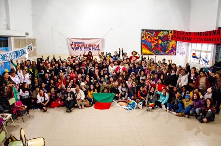 El Movimiento de Mujeres Indígenas por el Buen Vivir es un espacio en el que las mujeres de las 36 naciones indígenas nos organizamos desde nuestros saberes milenarios y nuestra memoria ancestral, sabiéndonos protagonistas activas de los procesos emancipatorios y libertarios en Indoamérica. Nuestra lucha anti patriarcal no es reciente sino que comenzó cuando el invasor impuso su espada y su cruz en nuestros territorios. Venimos caminando la palabra y el pensamiento de la tierra reconociendo que la plurinacionalidad de los territorios no ha sido desdibujada ni barrida por las fronteras levantadas por los Estados-nación. Con esta visión impulsamos en mayo 2018 la campaña “Nos queremos plurinacional”, en la que por primera vez las mujeres indígenas trajimos una perspectiva omitida para interpelar la homogenización y la argentinización del encuentro nacional de mujeres. Durante más de 3 décadas estuvimos recluidas en un solo taller de mujeres originarias, ahora deseábamos que nuestras voces y pensamiento fuera transversal en la totalidad de los talleres que recogieran nuestras realidades y propuestas.