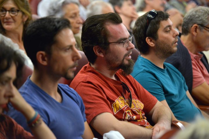 Después se dio la palabra al público, en el que estaban personas que habían llegado a través de la prensa, redes sociales, de organizaciones tan diversas como Soka Gakkai, Amnistía Internacional, Convergencia de las Culturas, Centro Mundial de Estudios Humanistas, Fe Baha’i, FICNOVA, CESIDA, El Mensaje de Silo, Mundo sin Guerras, Yayo Flautas, Desarma Madrid, Frente Antiimperialista Internacionalista, Equo… o figuras como Carla Antonelli del PSOE, actores, científicos, etc.