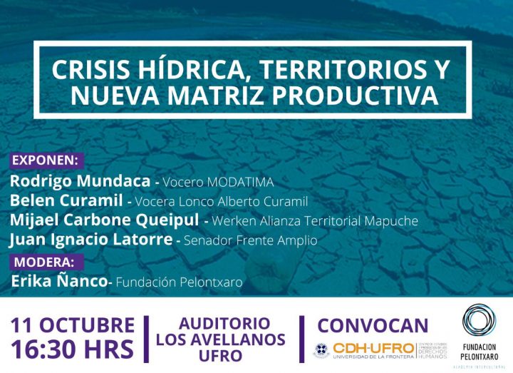 Por eso, el Centro de Derechos Humanos de la Universidad de la Frontera, junto a la Fundación Pelontxaro, organizan el foro llamado “Crisis hídrica, territorios y nueva matriz productiva», que debatirá con diferentes voces de la sociedad civil, universitaria y regional, la importancia del derecho del agua, el derecho a un medio ambiente sano y el derecho a la autodeterminación.